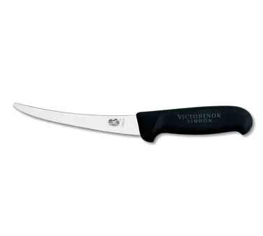 Enhance Your Restaurant's Productivity with the Victorinox Swiss Army, 5.6603.15ROUND Boning Knife. This high-quality knife is designed to meet the demands of a commercial restaurant setting. With its curved, semi-stiff blade and blunt/safety tip, it allows for precise and safe boning of meats and fish. The black Fibrox Pro handle provides a comfortable grip, ensuring efficiency and control during use. Made from high carbon steel, this knife offers exceptional durability and sharpness, allowing for effortless cutting and reducing the need for frequent sharpening. Whether you're deboning poultry, filleting fish, or trimming meat, this Victorinox Swiss Army knife is a reliable tool that will enhance your kitchen's productivity. With its authentic craftsmanship and trusted brand reputation, this boning knife is a must-have for any professional chef or restaurant owner.