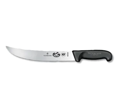 Where Innovation Meets Flavor with the Victorinox Swiss Army, 5.7302.25, Knife, Cimeter. This professional-grade knife is a must-have for any commercial restaurant. With its 10" curved blade and blue Fibrox Pro handle, it offers exceptional control and precision, making it perfect for slicing through large cuts of meat with ease. The slip-resistant handle ensures a secure grip, even in busy kitchen environments. NSF certified, this knife meets the highest standards of safety and hygiene. Designed by Victorinox Swiss Army, a trusted name in cutlery, this cimeter knife is built to withstand the demands of a busy commercial kitchen. Whether you're a chef or a butcher, this knife will become your go-to tool for preparing delicious meals. Invest in the Victorinox Swiss Army, 5.7302.25, Knife, Cimeter and experience the perfect blend of innovation and flavor in your restaurant.