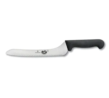Elevate Your Restaurant's Culinary Journey with the Victorinox Swiss Army, 7.6058.20, Knife, Bread / Sandwich. This high-quality knife is a must-have for any commercial restaurant. With its 9" offset wavy edge, it effortlessly slices through bread and sandwiches, ensuring precise and clean cuts every time. The black polypropylene handle provides a comfortable grip, allowing for easy maneuverability and reducing hand fatigue during long hours in the kitchen. Packaged in a convenient clamshell/peggable package, this knife is ready to use right out of the box. The Victorinox Swiss Army brand is known for its exceptional craftsmanship and durability, making this knife a reliable tool for busy restaurant kitchens. Whether you're serving freshly baked bread or crafting delicious sandwiches, this knife will enhance your culinary creations and impress your customers. Invest in the Victorinox Swiss Army, 7.6058.20, Knife, Bread / Sandwich and take your restaurant's culinary experience to new heights.