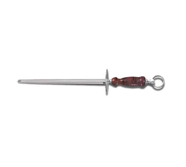 Optimize Your Restaurant's Culinary Setup with the Victorinox Swiss Army 7.8991.24 Knife Sharpening Steel. This essential tool is designed to keep your knives in top shape, ensuring precision and efficiency in your kitchen. With a 12" fine cut, round, and loose ring, this sharpening steel is perfect for maintaining the sharpness of your blades. The dark wood handle adds a touch of elegance and provides a comfortable grip for extended use. Whether you're a professional chef or a culinary enthusiast, this sharpening steel is a must-have for any commercial restaurant. It comes with a hangtag for easy storage and organization. Trust in the quality and authenticity of Victorinox Swiss Army, a renowned vendor in the industry. Enhance your restaurant's performance with this reliable and durable sharpening steel.